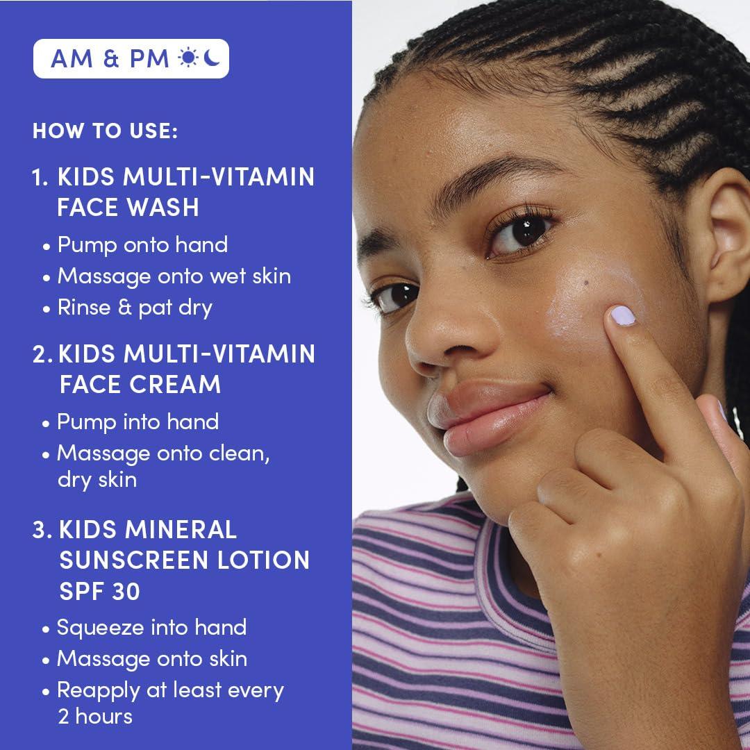 GENTLY CLEANSE IMPURITIES: Use the Multi-Vitamin Face Wash in this kids and pre-teen skin care set mornings and evenings to gently remove excess oil, dirt, and pore-clogging impurities.
