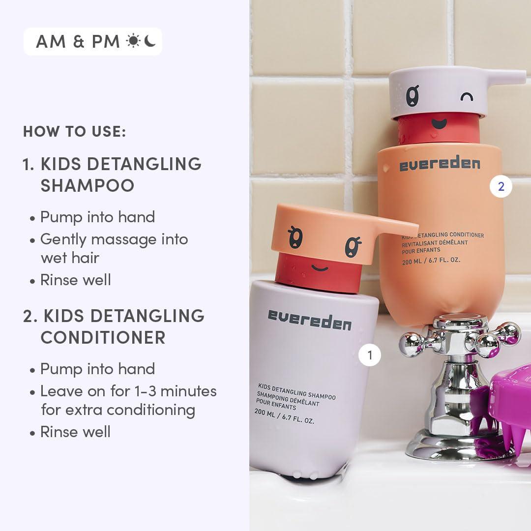 Evereden Happy Hair Duo for Kids: Vegan Shampoo and Conditioner Set with Detangler Brush – Strengthens & Smooths All Hair Types(Shampoo and Conditioner)
