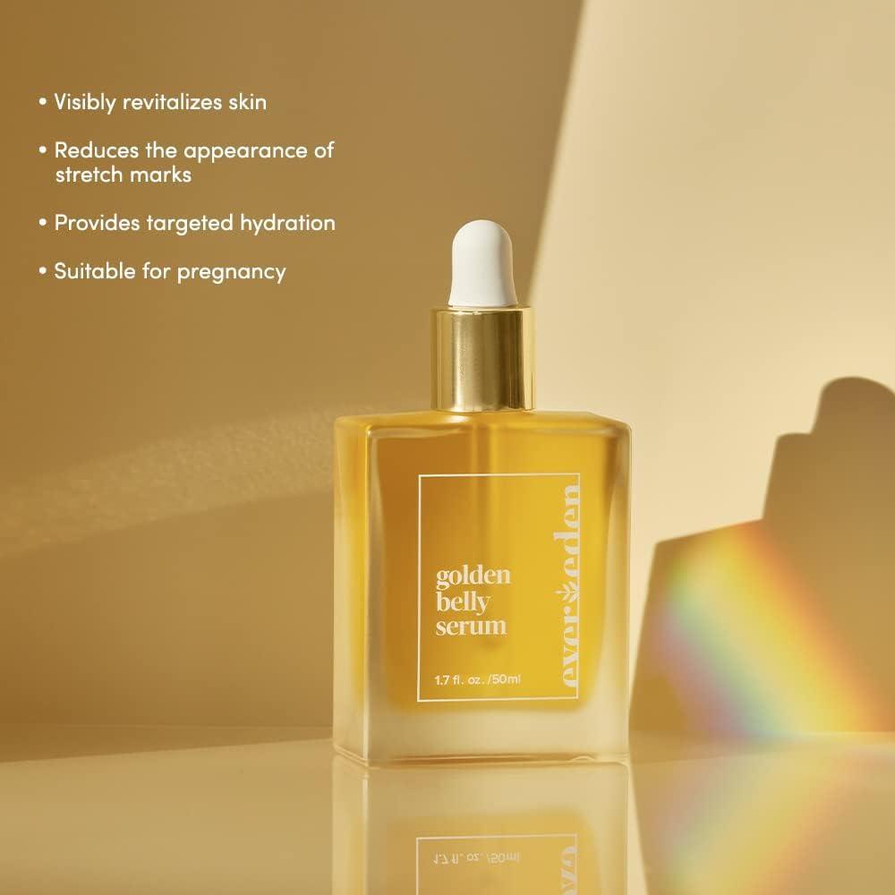 CLEAN INGREDIENTS: Golden Belly Serum is made from 13 nutrient-rich botanical actives, including Marula, Rosehip and Centella, to provide a multi-benefit treatment to cleanly help skin regain comfort, the feeling of elasticity, and visible glow.
